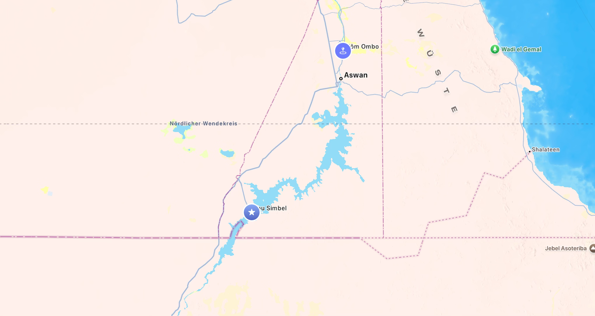 Von Abu Simbel waren es nur noch ca. 70 km zur Grenze mit dem Sudan. Hier hat man gegen 10 Uhr schon gemerkt, dass die Sonne viel Kraft hat und wir konnten nur erahnen, wie warm es tagsüber wird.